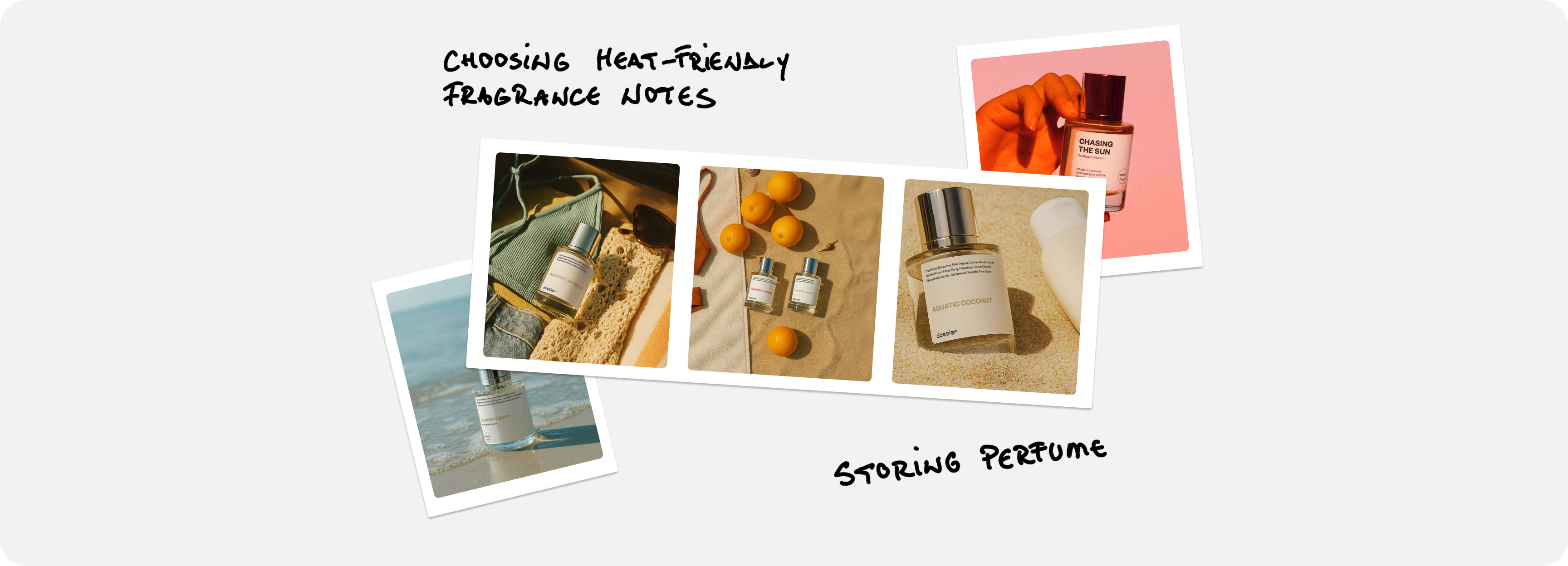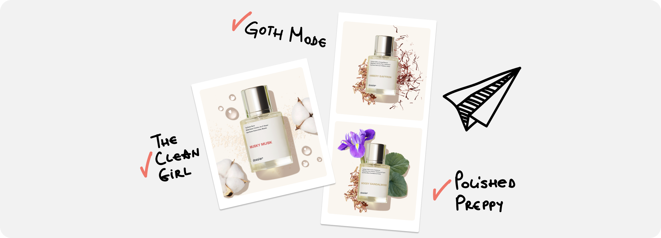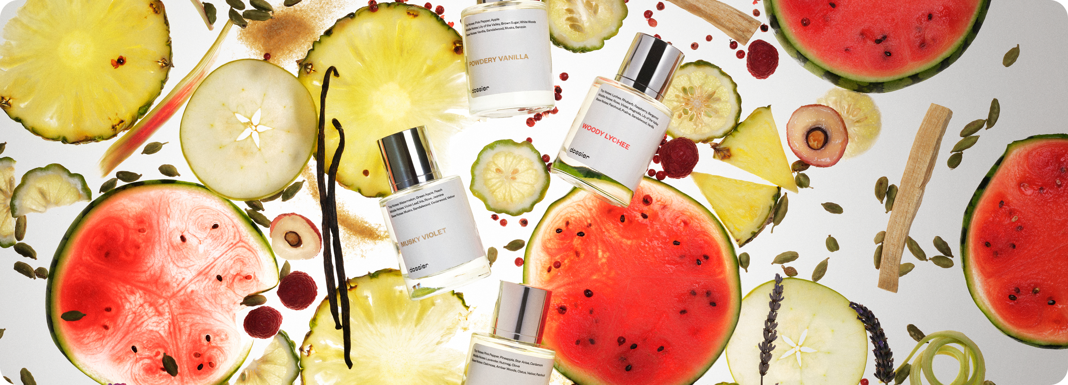 Two exclusive scents. Radiant citrus kisses for day, deeply sensual notes for night. At Dossier, every fragrance begins with a story, and these two start