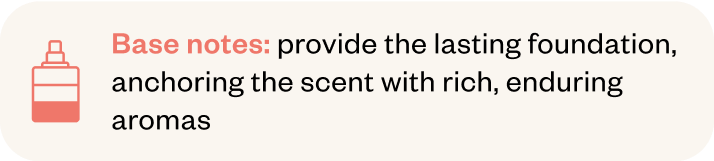 While each scent boasts a combination of different notes, each one plays an important, often contrasting role in how a fragrance evolves from the first spritz. Fragrance notes are separated into three categories: top, heart, and base notes, all of which work together to create a scent’s unique character. At the top are bright and fleeting top notes (often citrus, green, or fresh fruity-florals), which create the first impression but quickly fade. Following this, heart notes (like aromatic, spicy, or gourmand notes) take center stage for a few hours, offering the core character of the fragrance with more depth and complexity. Finally, the base notes provide the lasting foundation, anchoring the scent with rich, enduring aromas like vanilla, woody, ambery, or musk notes that linger on the skin for up to eight hours. This pyramid ensures a dynamic olfactory journey with each spritz.